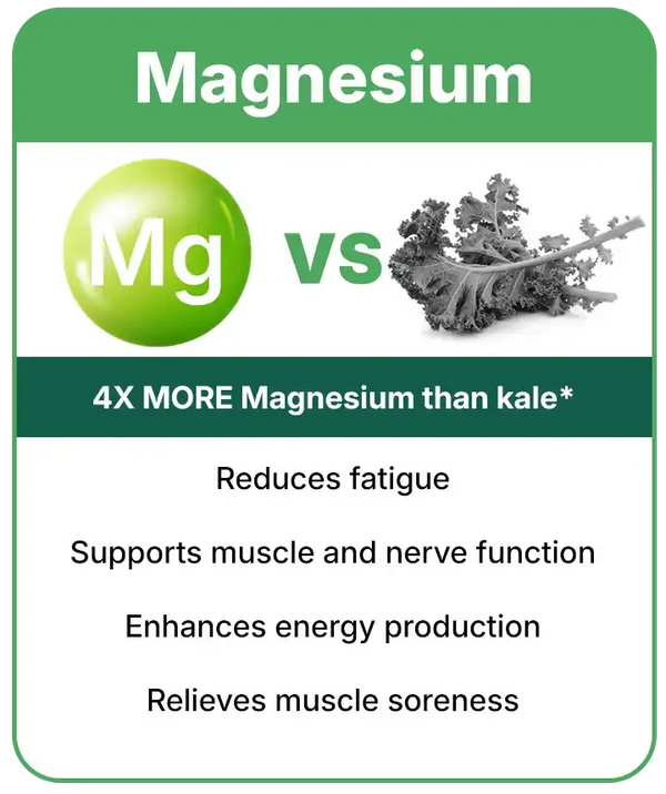 💤 Low Energy & Fatigue Replenishes magnesium, B vitamins, and antioxidants to restore cellular energy so you feel more awake, alert, and alive.